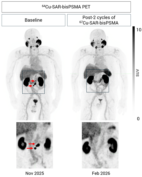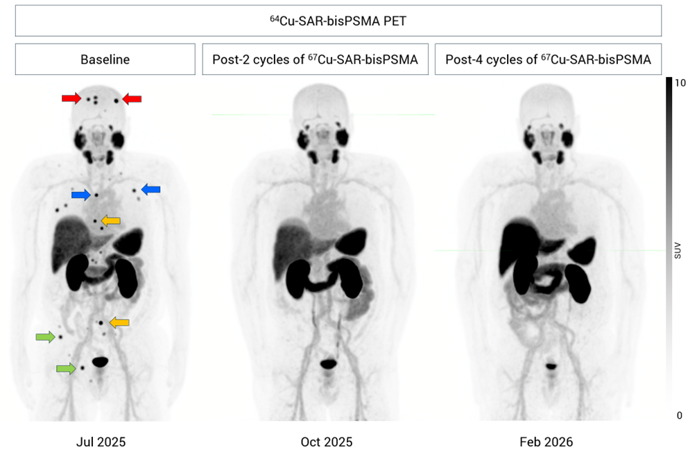 “While this outcome is extraordinary, we now know this is not just luck or coincidence. Despite the number of participants in the SECuRE trial being relatively small, this is now the fifth time we have seen a patient present with undetectable disease following their 67Cu-SAR-bisPSMA treatments2,3,4, and study recruitment is still ongoing. We are also excited to see that the previous participant in the Cohort Expansion Phase of the SECuRE trial to achieve undetectable disease observed by anatomical and molecular imaging2 continues to show undetectable disease during his last follow up in February 2026, following the fourth 67Cu-SAR-bisPSMA cycle. This is especially encouraging as this participant had bone metastasis at study entry and now continues to report excellent quality of life after his treatment with 67Cu-SAR-bisPSMA.”